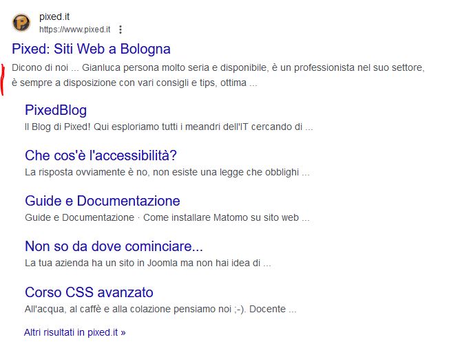 Come sappiamo gli snippet di Google (quelle due righe di descrizione della pagina nei risultati organici del motore di ricerca) sono spesso genrati dalla meta descrizione che mettiamo nella pagina. Ma non sempre è così: a volte infatti Google preferisce prendere dei pezzi di testo da dentro la pagina, perchè per lui sono più rilevanti per l'utente finale.